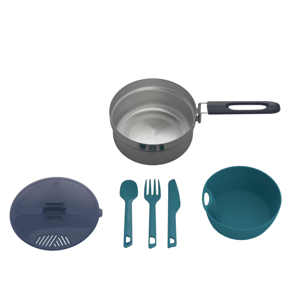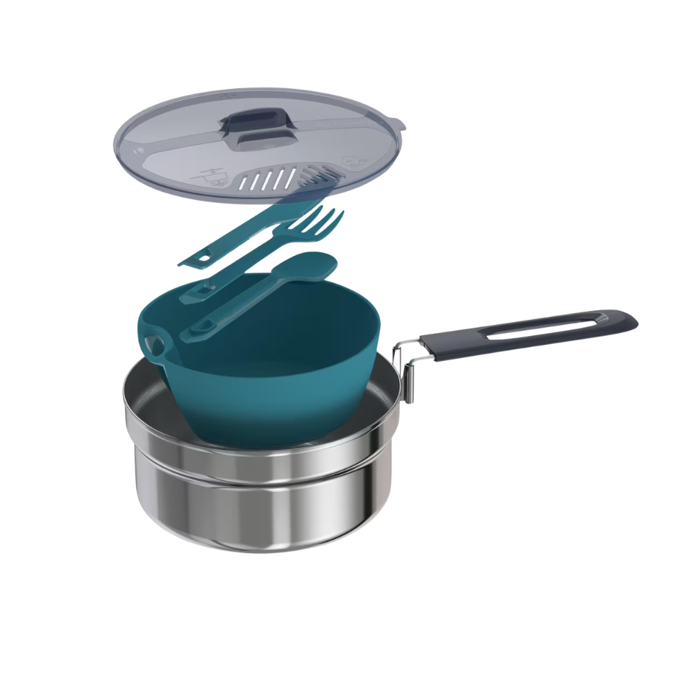 1 Olla graduada con 1 asa plegable patentada. (1,1 L útil, 1,3 L total, 230 g, Ø 17 cm x 8,5 cm)